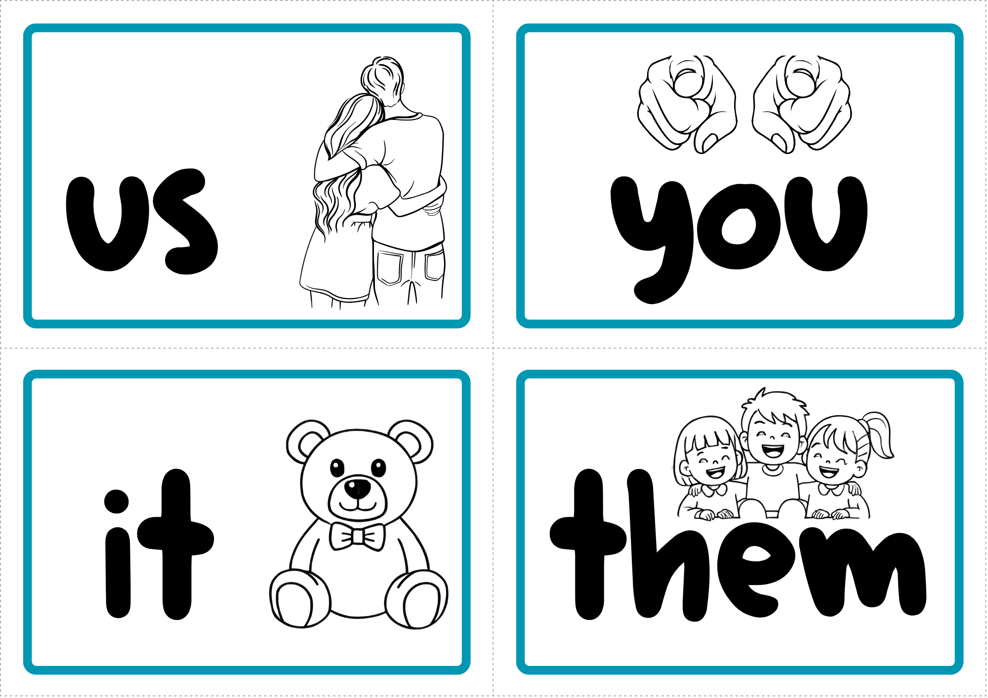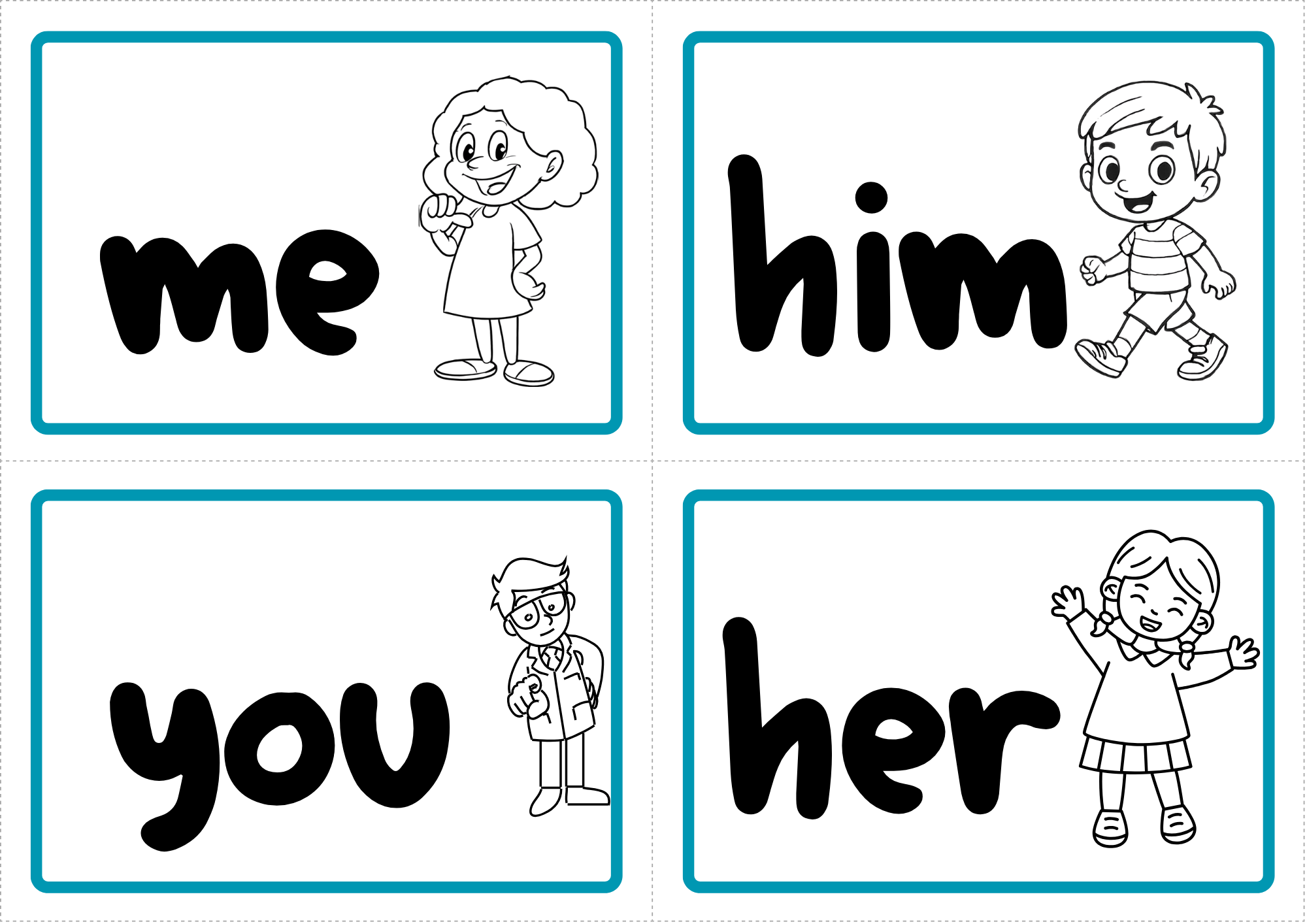 Карточки помогают ученикам наглядно понять разницу между подлежащим и дополнением в предложении и начать правильно использовать местоимения в речи.