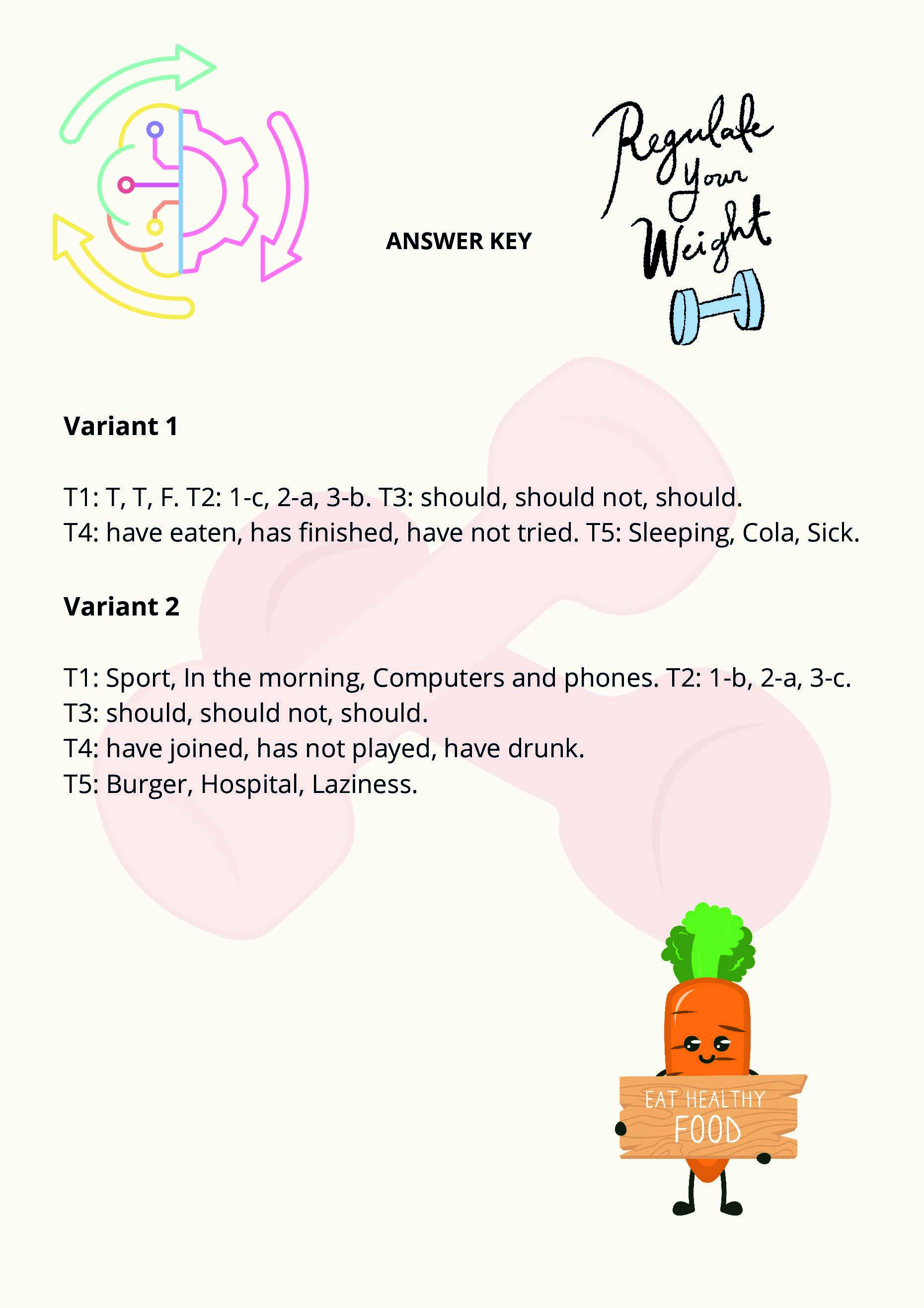 - контроль знаний по темам: здоровое питание, спорт и полезные привычки.