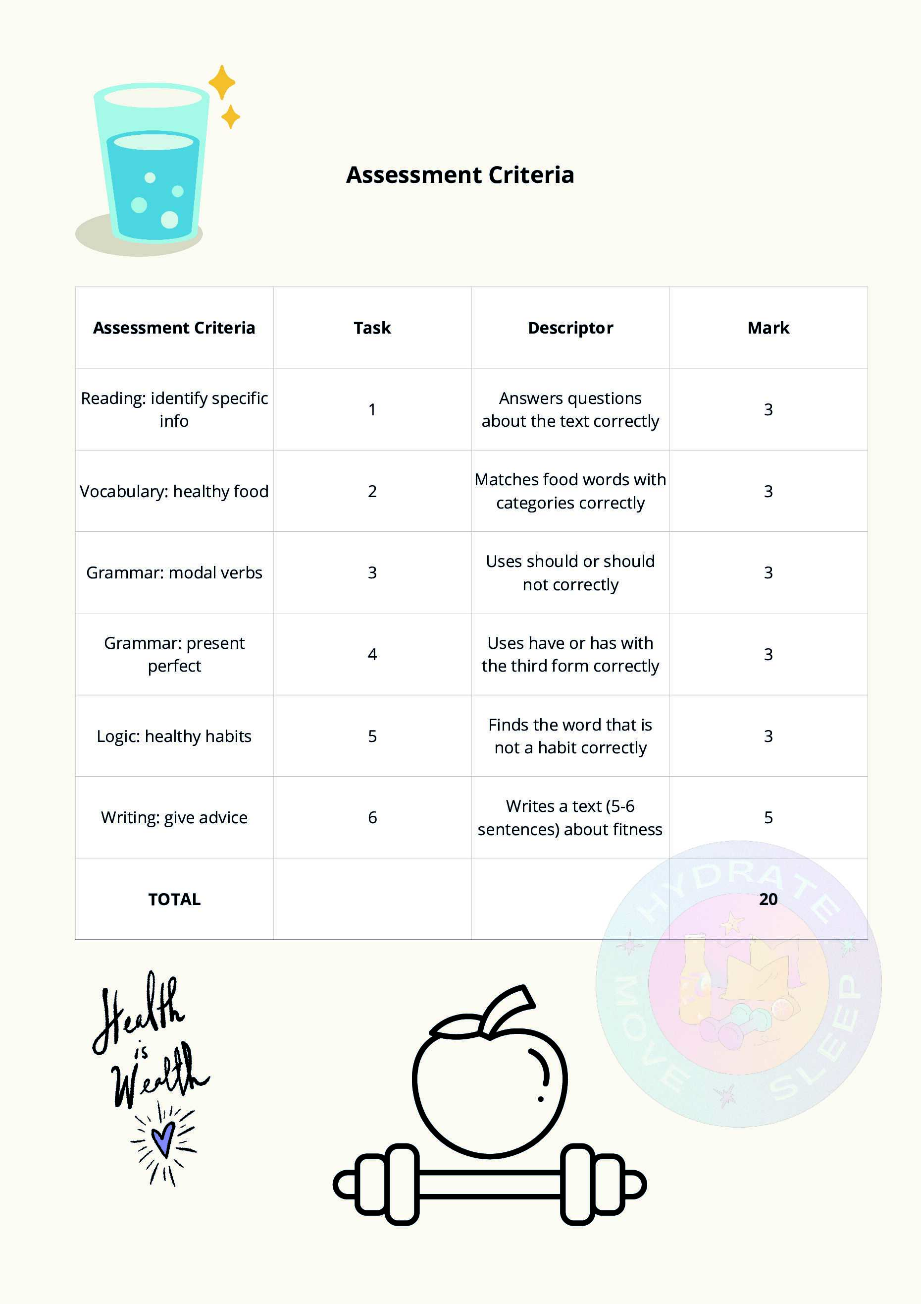 СОР 7 класс Английский язык 4 четверть "Healthy Habits" (2 варианта + ответы + дескрипторы)