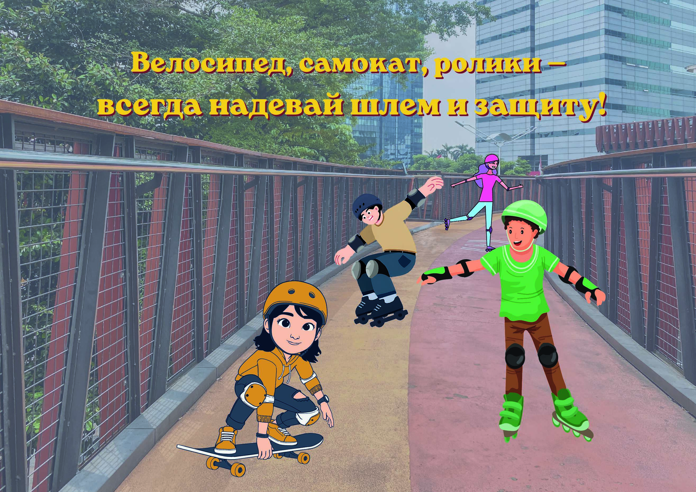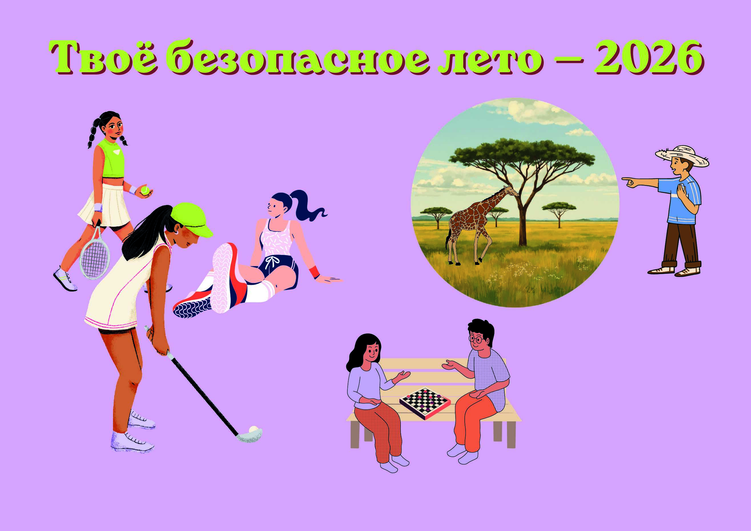 - Центральный заголовок: Крупная акцентная надпись «Твоё безопасное лето».