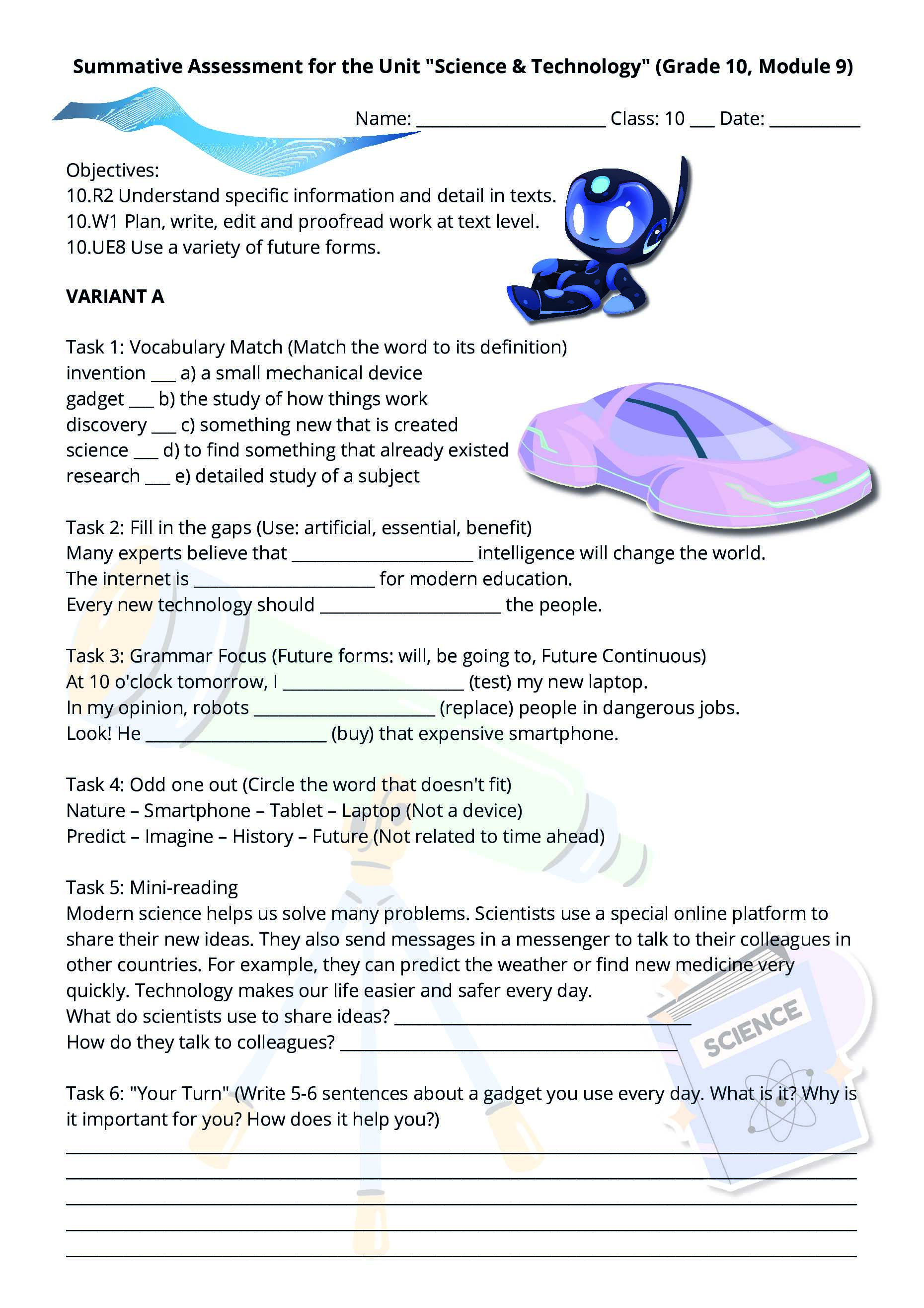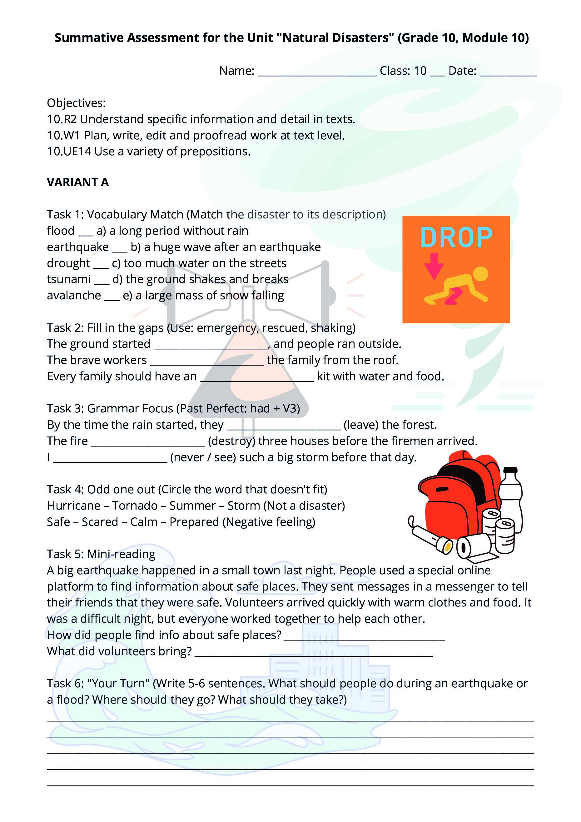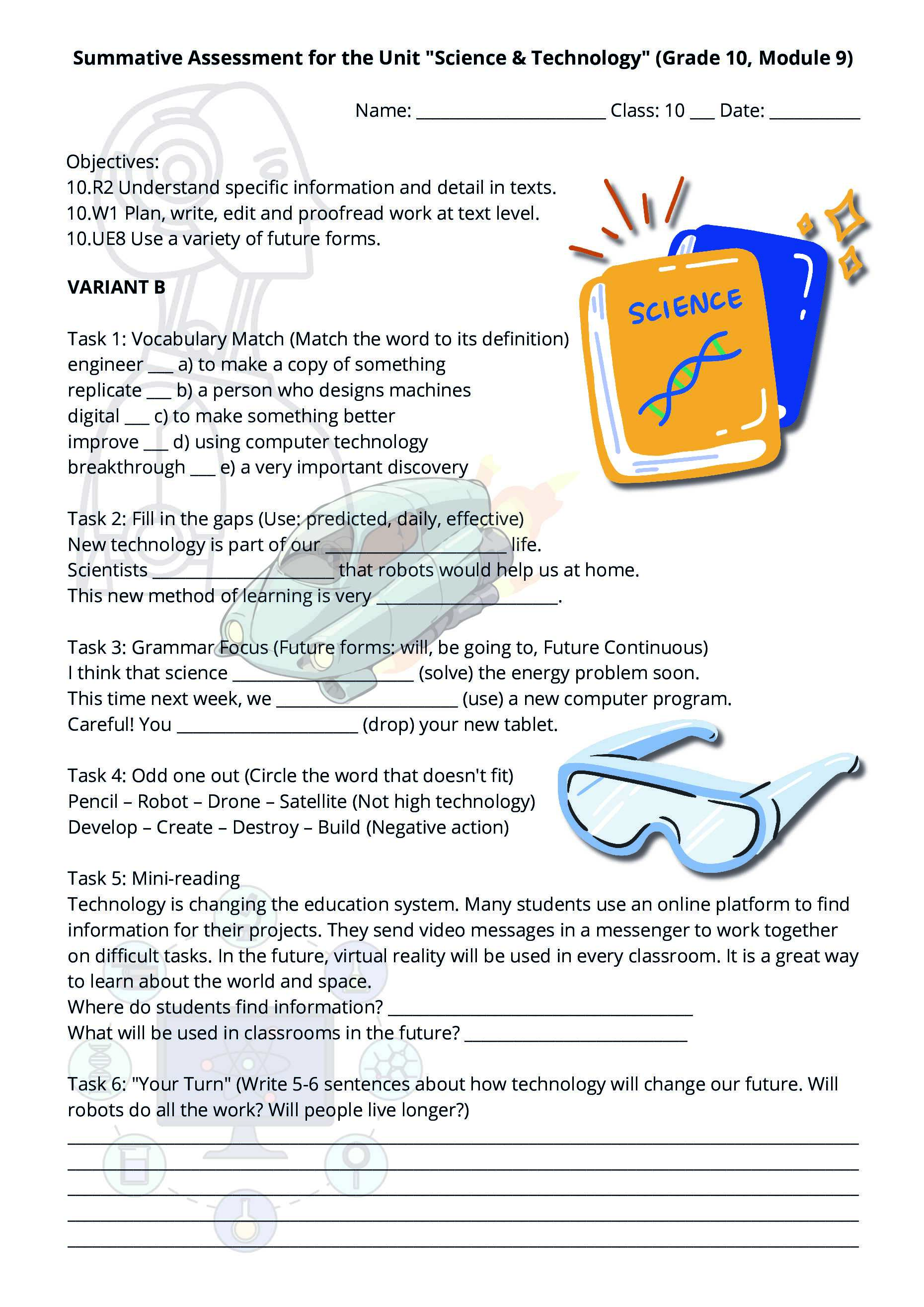 Комплект суммативных работ (СОР) по английскому языку для 10 класса по разделам «Science & Technology» и «Natural Disasters» (Module 9-10)