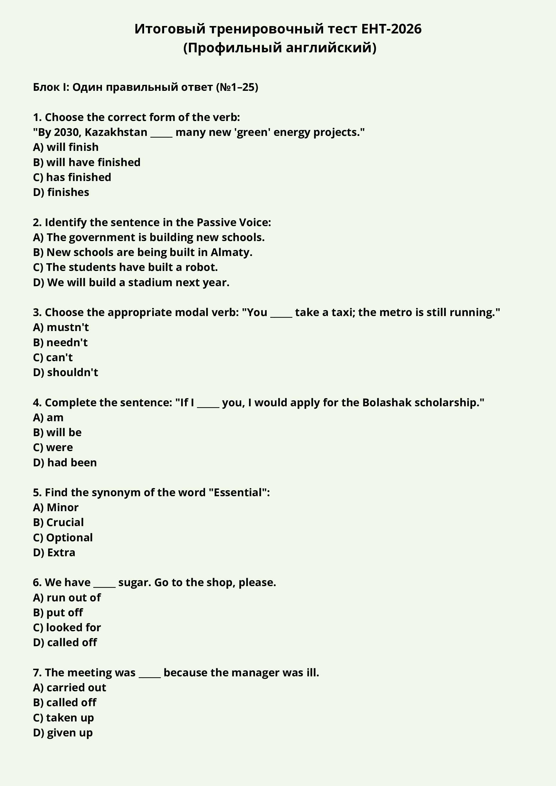 Итоговый тренировочный тест ЕНТ-2026 (Профильный английский)