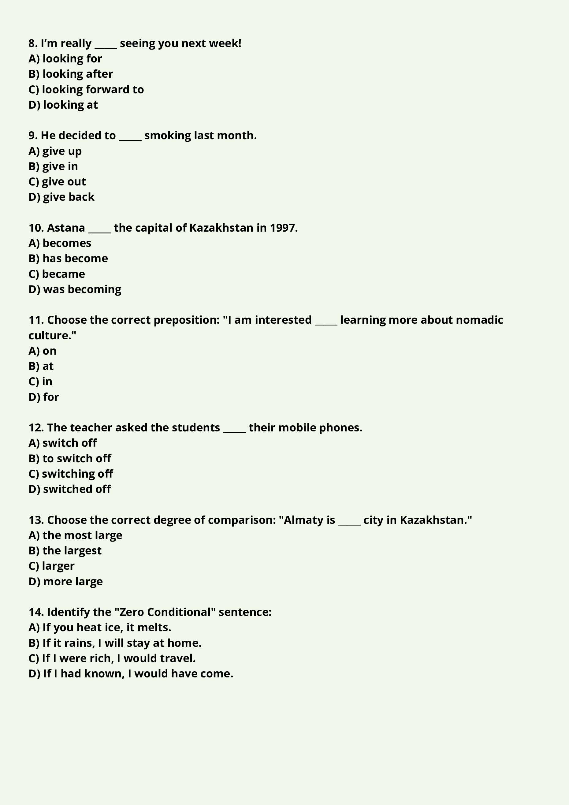 Особое внимание в тесте уделено разделу «Phrasal Verbs». В состав включен дополнительный блок из 15 наиболее частотных фразовых глаголов, которые традиционно вызывают трудности у абитуриентов.